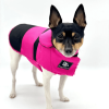 Your pet will stay dry and warm in our water resistant, fleece-lined coat. Made with Ottertex polyester ripstop fabric that is a durable and synthetic fabric. It is a high quality fabric that is woven with special fibers that allows the fabric to have superior hold against all types of damage and tear. Velcro front and belly band closure for easy on and off. XXS and XS sizes have D-ring for leash. Larger sizes have in the back so that you can use your own harness.